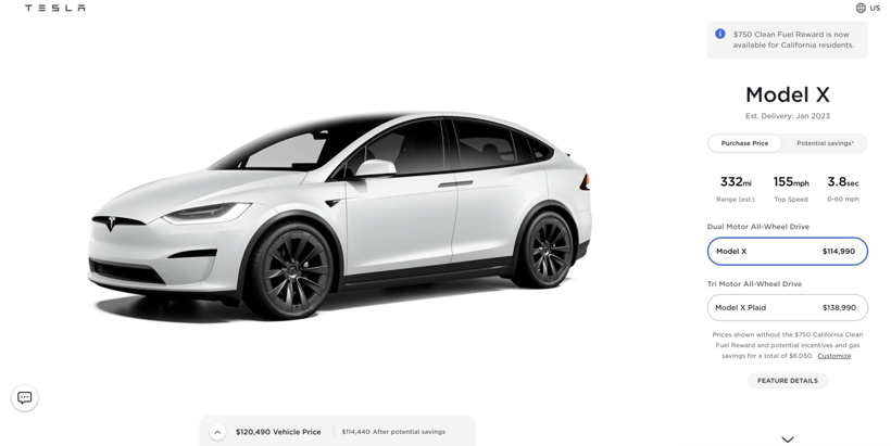 Model X价格上涨1万美元,目前起价为114,990美元;Model X Plaid的价格也大幅上涨。所有上涨的价格只适用于3月15日及以后的新订单,目前特斯拉大多数车型的交付时间至少需要等待几个月。