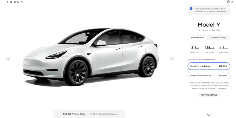 特斯拉将Model Y基本版的价格提高了2,000美元,至62,990美元;Model Y高性能版价格也上涨了3,000美元,至67,990美元。