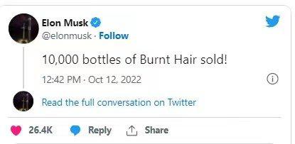 日前,CEO埃隆·马斯克带来一款名为Burnt Hair “烧焦头发”的男士香水。