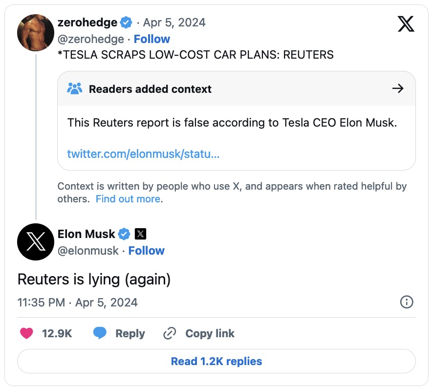 特斯拉被曝放弃平价车? 马斯克:路透社在撒谎