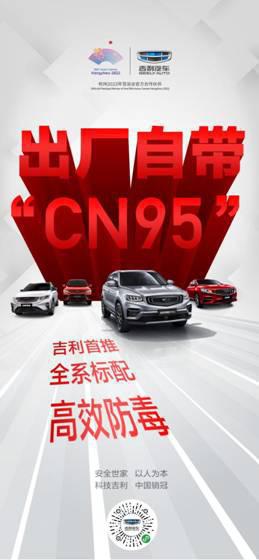 继为全国新老车主免费更换车规级CN95高效复合空调滤芯(以下简称“车规级CN95空滤”)后,吉利汽车3月6日又宣布,即日起旗下所有在售车型出厂时都将配备车规级CN95空滤,让用户提车即可享受到N95口罩级的出行安全防护,护航每一次健康出行。