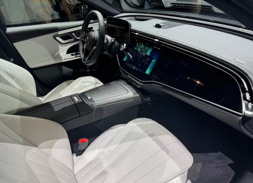 奔驰将这些功能搭载在奔驰长轴距插混动力E级车上,这款车标配高通8295智能座舱芯片和5G通信技术,采用第3代MBUX智能人机交互系统,语音助手做了升级,导航方面则采用了高德定制版。