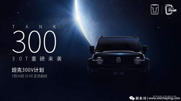 3月21日,我们从坦克官方处获悉,坦克将会在3月30日20点开启坦克300 3.0T众筹V计划。新车是基于坦克300边境限定版打造而来,将搭载3.0T V6发动机。根据具体细则,该众筹目标共1000份,每份2万元(可抵4万元车价),每位用户仅能购买1份,而车型目标价格为35万元以上。