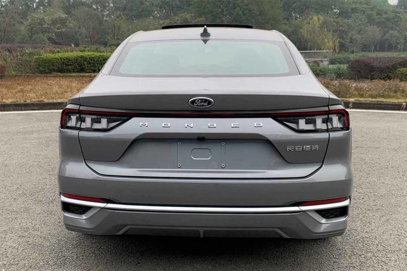 车尾部分,全新蒙迪欧采用时下流行的贯穿式尾灯设计。灯组内部,三条柱状尾灯造型与Mustang车型类似,为该车更添加一抹类似跑车的感觉。尾灯下部,MONDEO字样放置其中。梯形拍照架上侧,该车设有筋线,为车尾带来更丰富的层次感。