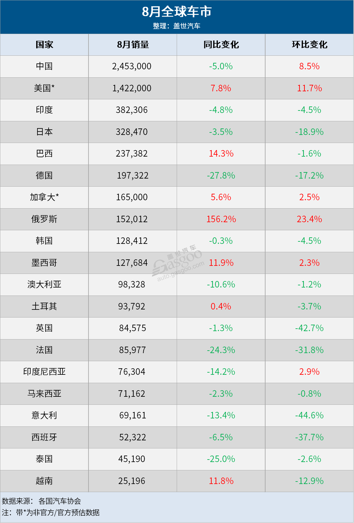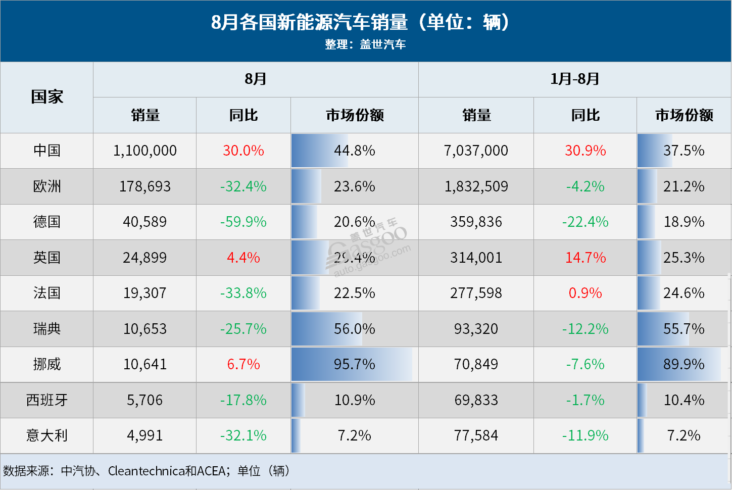 8月全球车市:中国蝉联第一,13国销量齐跌