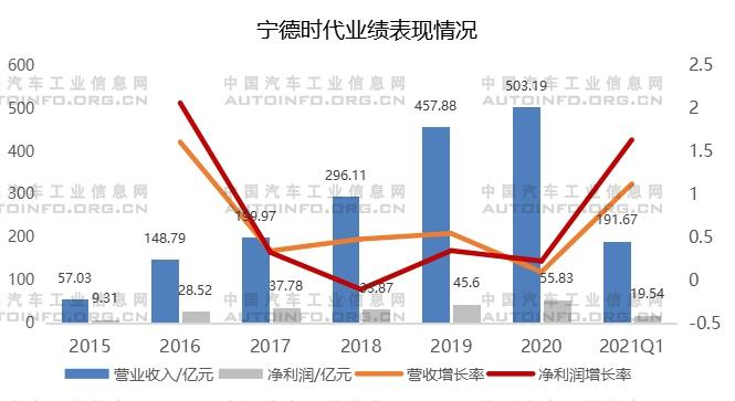 宁德时代龙头地位日益稳固,2021年Q1实现营业收入191.67亿元,较去年同期增长112.24%,归属于上市公司股东的净利润达19.54亿元,较去年同期增长163.38%。