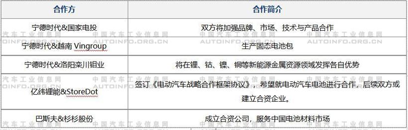 动力电池企业同同行业企业及上游材料企业等合资合作亦成新常态,通过合作从产品、技术、市场等方面取长补短,进一步提升综合竞争力。
