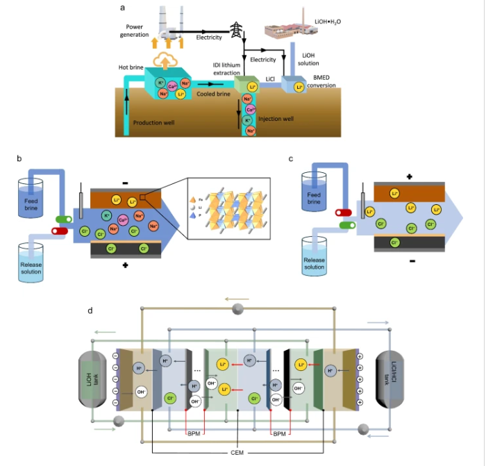 车圈引力波讯 随着锂离子电池越来越多地应用于电动汽车和电网级储能,市场对锂的需求也在迅速增长。从地热盐水等替代水源中提取锂对于满足这一需求起着重要作用。电化学插层是一种很有前途的锂提取技术,因为它能够提供高锂选择性并避免使用刺激性的化学再生剂。