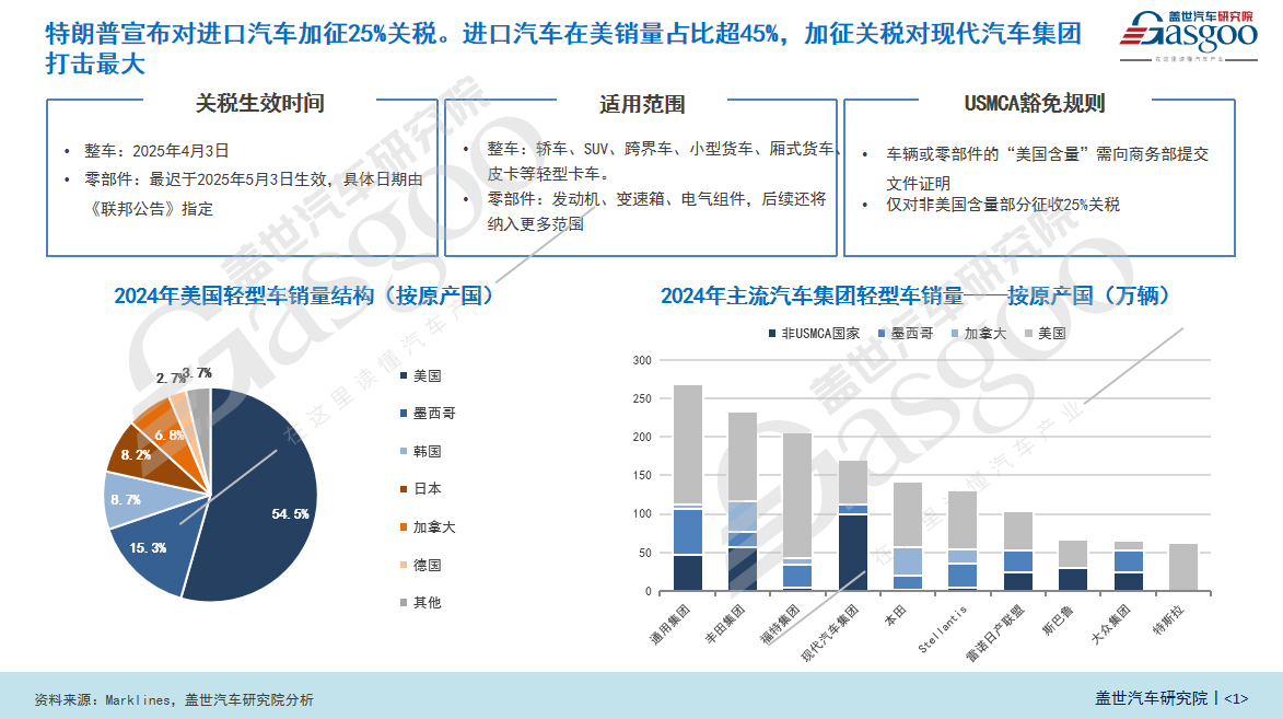 4月2日,特朗普政府正式确认,其对全球汽车及轻型卡车加征25%进口关税的政策将自美国东部时间4月3日起生效,随后25%的汽车零部件关税也将于5月3日之前实施。一石激起千层浪,这一关税政策的出台,在全球汽车市场引发了剧烈变动。