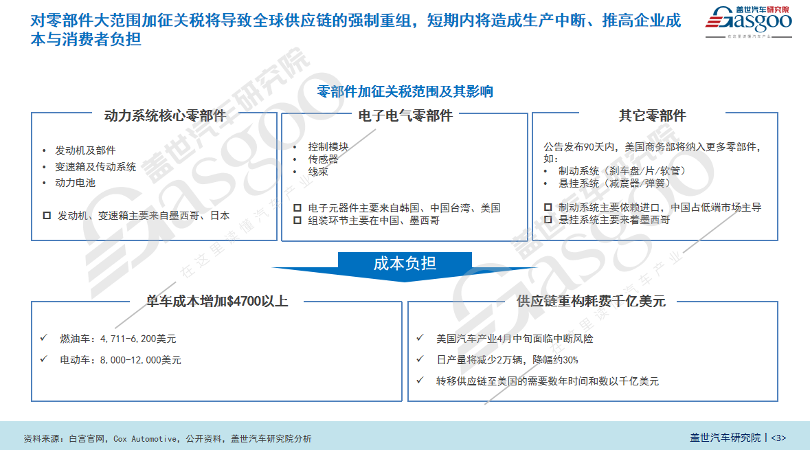 从供应链影响来看,特朗普政府的关税政策实质上构成了对全球汽车供应链的强制性重构。首先,将具体影响到以下汽车零部件:
